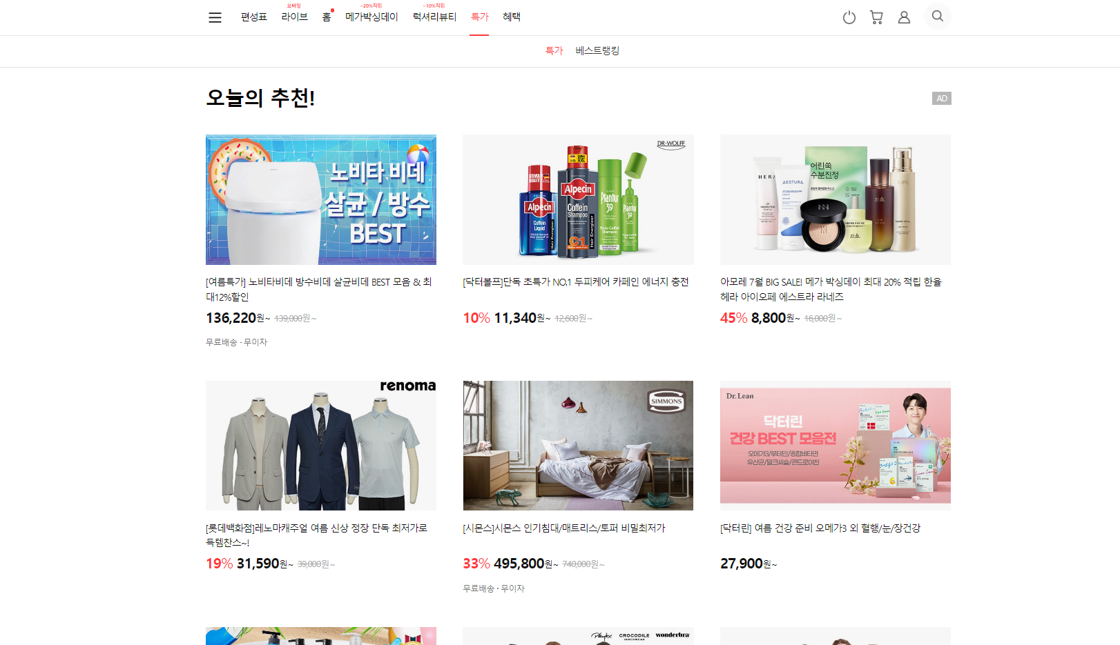 건강기능식품, 화장품, 뷰티 제품 등 건강과 아름다움을 위한 다양한 상품을 만나볼 수 있습니다.