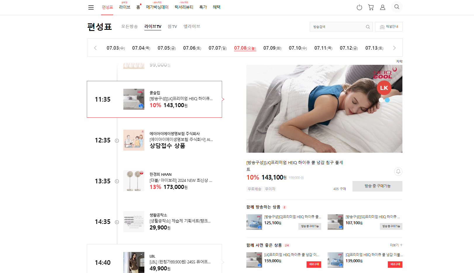 롯데홈쇼핑에서는 다음 종류의 상품들을 확인하실 수 있는데요.
