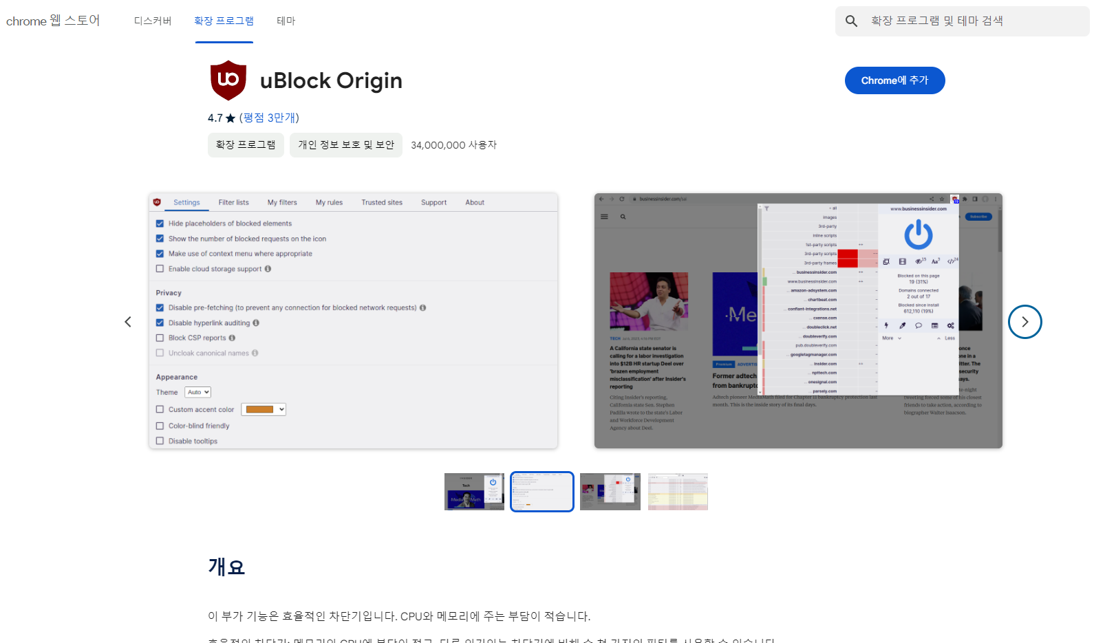 유료 서비스는 좀 부담스럽다면? 다양한 광고 차단 확장 프로그램들도 있는데요.