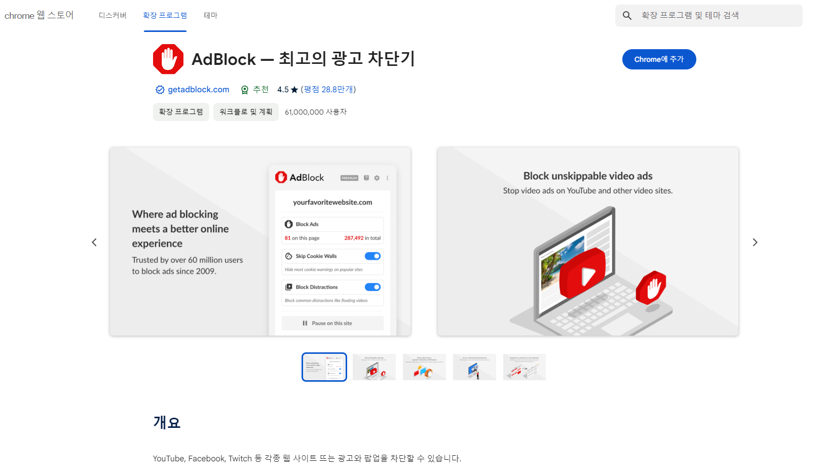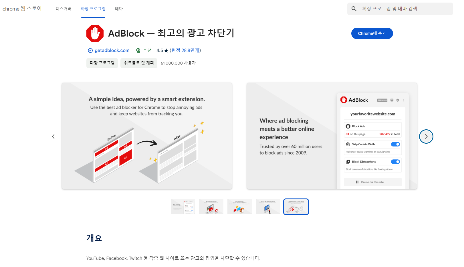 AdBlock — 최고의 광고 차단기 - Chrome 웹 스토어
