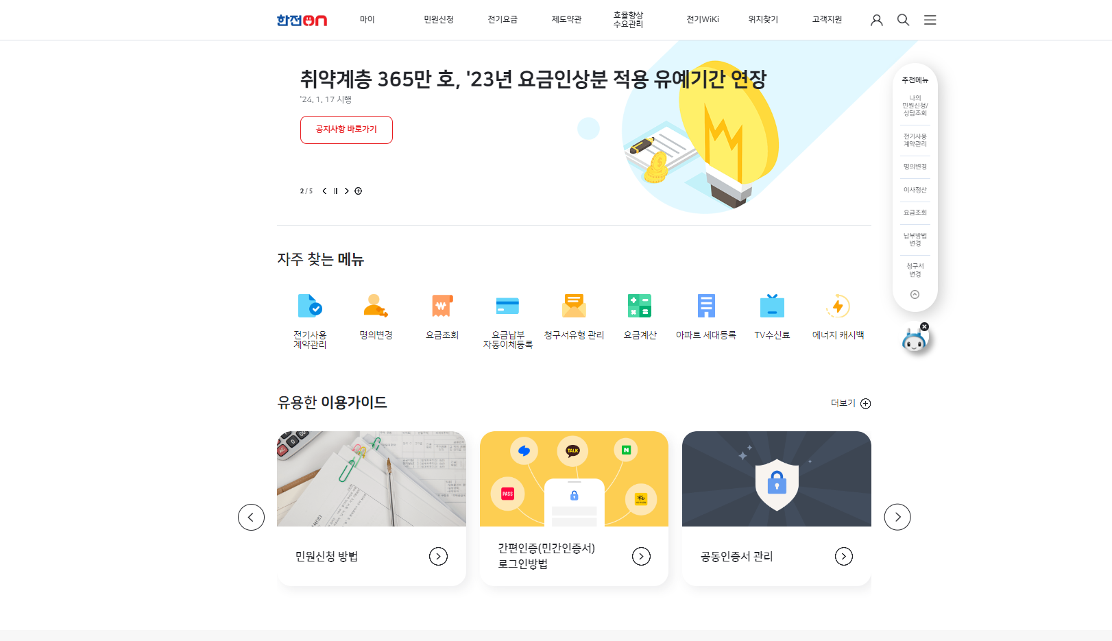 고객번호와 비밀번호를 입력하면 전기 사용량, 요금 내역 등을 확인할 수 있습니다.
