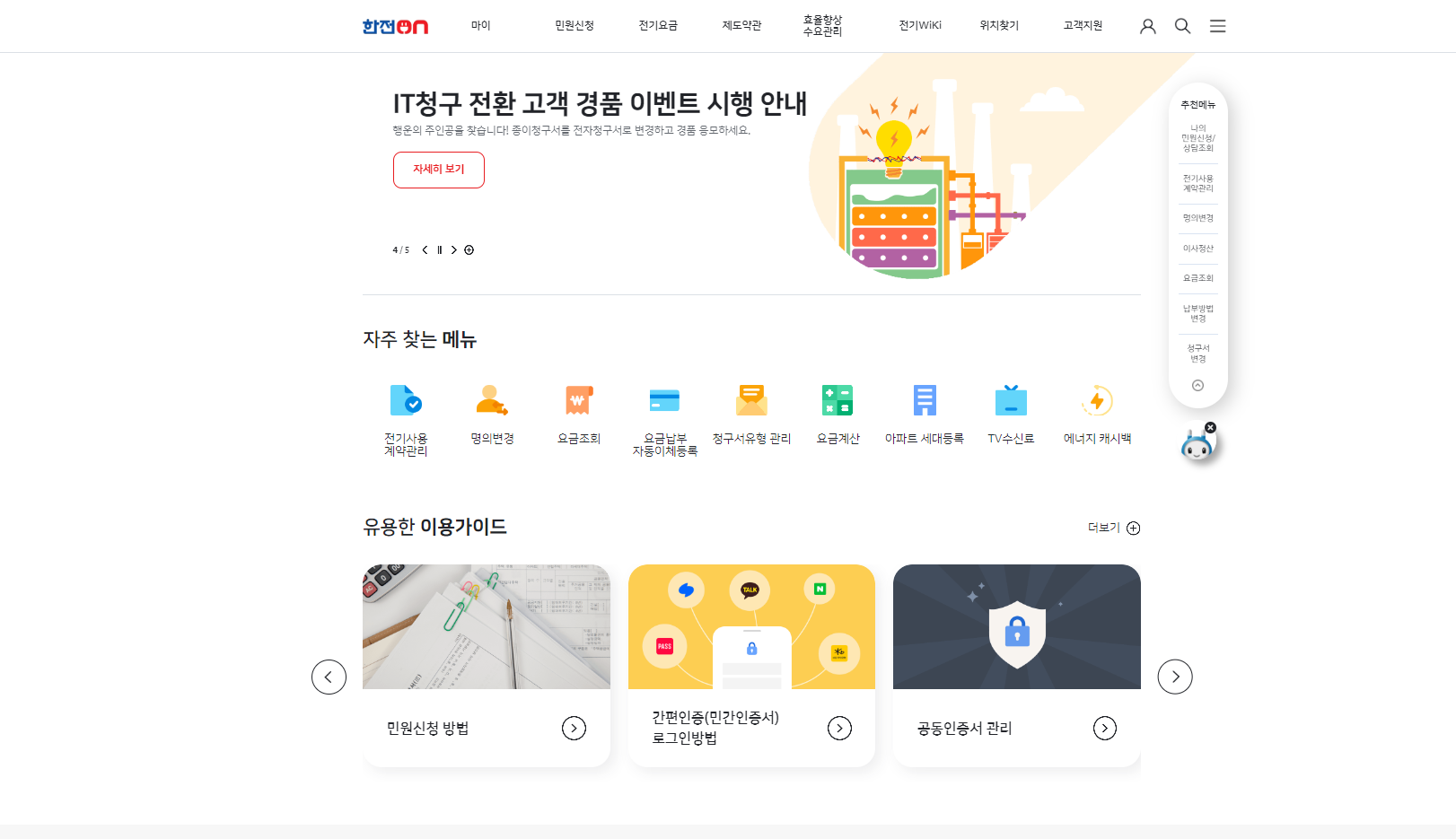 한국전력공사(KEPCO)에서 제공하는 전기요금 조회·납부, 전기사용 관련 신청접수 및 정보조회 등의 모바일 서비스를 위한 어플리케이션
